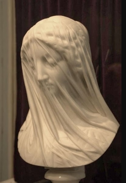 “A Virgem Velada“, realizada pelo artista italiano do século XIX – Giovanni Strazza (1818-1875) - é uma das mais impressionantes esculturas com transparência marmórea. Realizada com mármore de Carrara, está localizada no Convento São João, Pça da Catedral, St. John, Terra Nova. Outros exemplos do trabalho de Strazza podem ser vistos no Museu do Vaticano e no Palácio do Arcebispo de Milão . Durante meados do século XIX , o nacionalismo italiano estava em ascensão , bem como o ressurgimento do nacionalismo das artes italianas e da música. “A Virgem Velada” de Strazza é uma peça com essa escola — Risorgimento — de arte nacionalista italiana. A imagem de uma mulher com véu era o assunto favorito de toda escola de escultores da época, entre eles Strazza, Pietro Rossi e Rafaelle Monti. | |