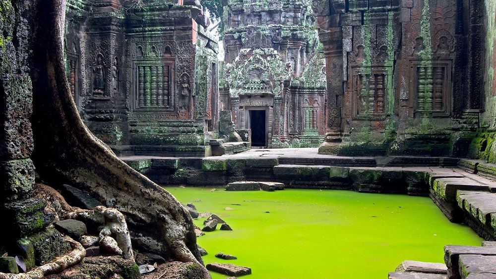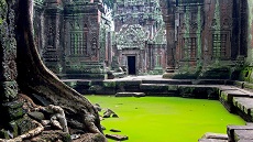 Ta Prohm é o nome moderno de um dos templos de Angkor, na Província de Siem Reap, no Camboja. Construído no estilo Bayon no final do século XII e início do século XIII, e originalmente chamado Rajavihara. Ta Prohm faz parte do complexo de templos construídos na zona de Angkor, a antiga capital do Império khmer durante a sua época de esplendor, entre os séculos IX e XV, está localizado aproximadamente um quilômetro a leste de Angkor Thom e no extremo sul da East Baray, foi fundado como um mosteiro Budista Mahayana e universidade pelo rei Khmer Jayavarman VII, que reinou de 1181 a 1220. Diferentemente da maioria dos templos de Angkor, Ta Prohm foi deixado em grande parte na mesma condição em que foi encontrado |
