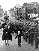 O menino nesta fotografia tornou-se literalmente o garoto-propaganda das famílias separadas pela Segunda Guerra Mundial. A chance de Warren Bernard, de cinco anos, escapar das mãos de sua mãe para tocar a mão de seu pai "se tornou viral": foi publicada em todo o mundo, inclusive na revista Life. Uma cópia da foto foi pendurada em todas as escolas da Colúmbia Britânica durante a guerra. |