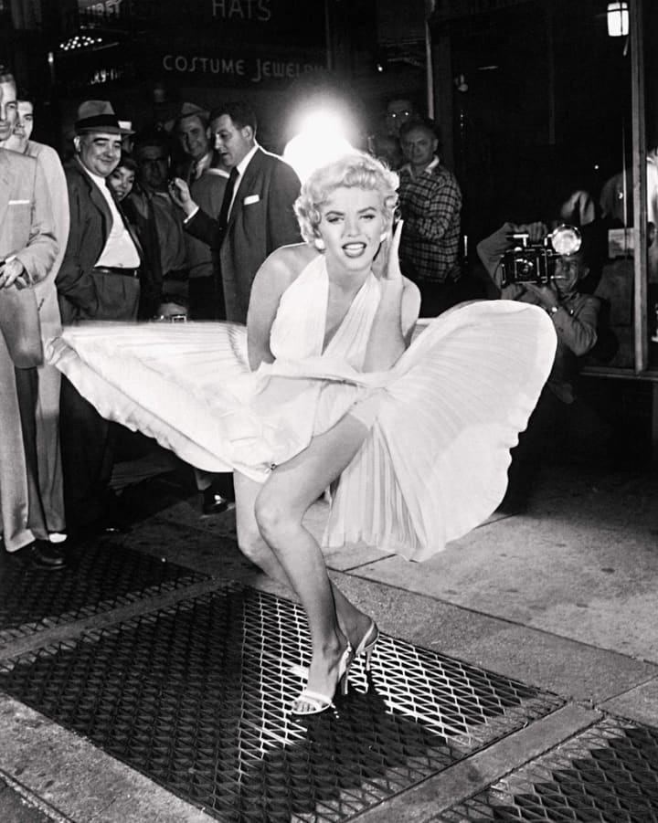 A iEm 15 de setembro de 1954, o fotógrafo Sam Shaw fotografou a famosa imagem de "saia voadora" de sua amiga Marilyn Monroe. Sessenta anos atrás, Marilyn Monroe hipnotizou uma multidão de espectadores sortudos enquanto seu vestido branco voava sugestivamente acima dos joelhos. |