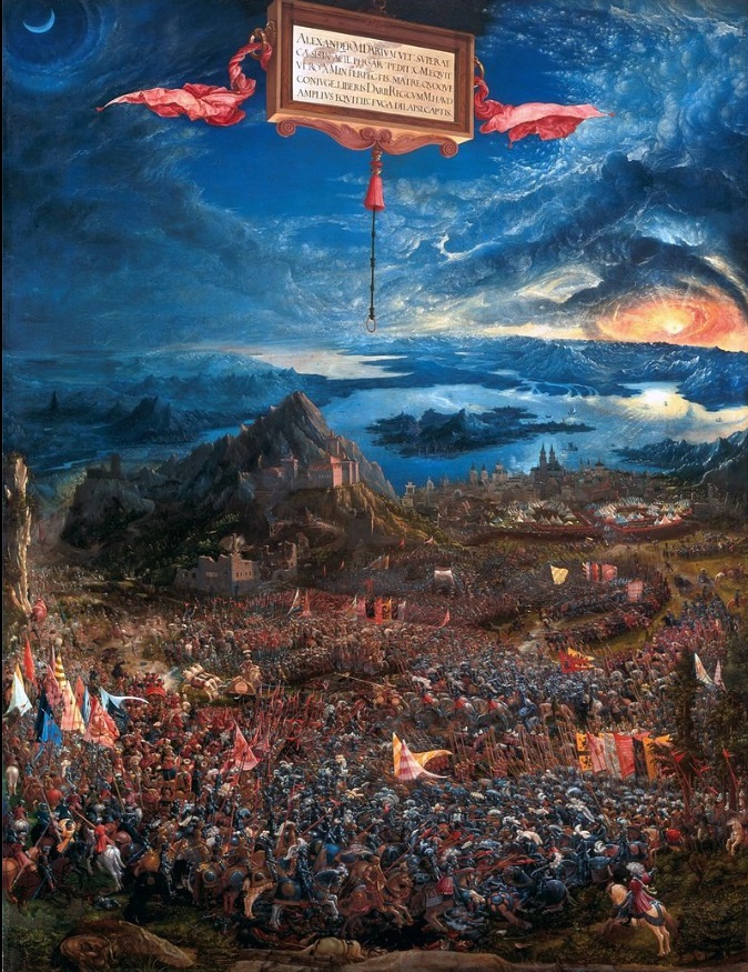 O duque Guilherme IV da Baviera encomendou A Batalha de Alexandre em Isso em 1528 como parte de uma série de peças históricas que seriam exibidas em sua residência em Munique. Analistas modernos sugerem que a pintura, através de seu grande uso de anacronismos, tinha a intenção de conectar a heroica vitória de Alexandre ao conflito europeu contemporâneo contra o Império Otomano. Particularmente, a derrota de Solimão, o Magnífico, no Cerco de Viena pode ter sido uma inspiração para Altdorfer. É possível detectar uma subcorrente religiosa, especialmente em seu céu extraordinário; isso provavelmente foi inspirado pelas profecias do Livro de Daniel e o temor contemporâneo dentro da Igreja sobre o iminente apocalipse. A Batalha de Alexandre em Isso, junto com outras quatro obras da coleção inicial de Guilherme, está agora na Antiga Pinacoteca em Munique.