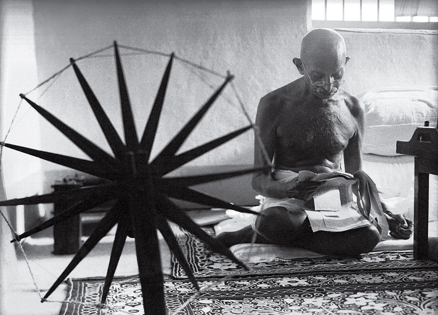 Em 1946, Margaret Bourke-White (1904-1971) passou um tempo na Índia fotografando para uma matéria na revista Life sobre lideres hindus. Ela fez dezenas de imagens de Mahatma Gandhi com a sua família, em oração, entre outras situações. Mas a foto que se tornou mais conhecida foi a que mostra Gandhi diante de sua roda de giro, apesar dela não ter sido publicada na matéria que Bourke-White realizava. Somente meses mais tarde essa icônica imagem foi publicada pela primeira vez em outra matéria sobre curas medicinais. Mas somente em fevereiro de 1948, a foto se tornou conhecida em todo o mundo após a Life realizar uma homenagem de várias páginas a Gandhi logo após o seu assassinato.