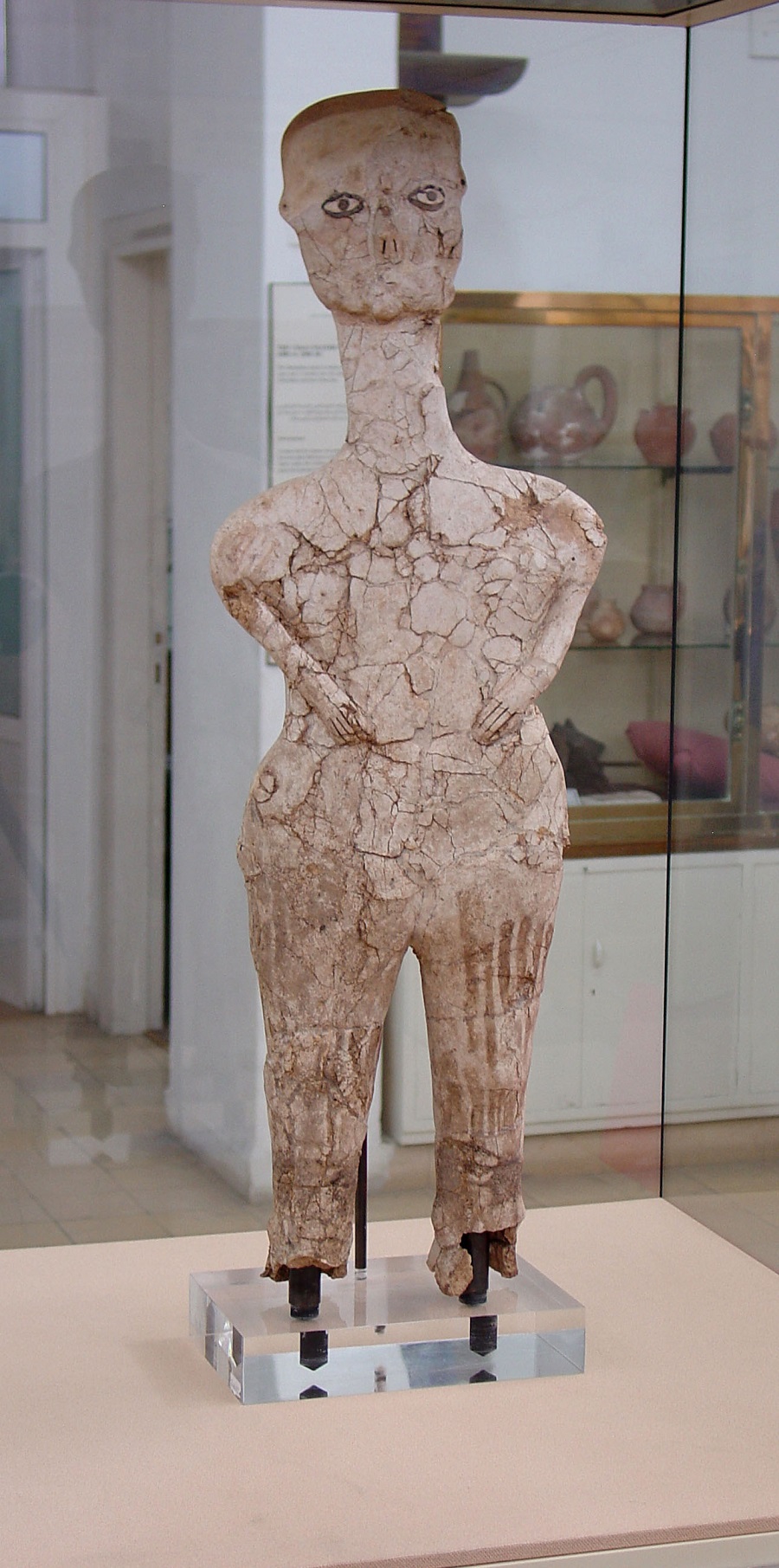 As Estátuas de Ain Ghazal são uma série de estátuas monumentais de gesso de cal e estátuas de junco datadas do período neolítico C pré-olaria, descobertas na Jordânia, no sítio de Ain Ghazal (Ain Gazal). Um total de 15 estátuas e 15 bustos foram descobertos entre 1983 e 1985 em dois esconderijos subterrâneos, criados com cerca de 200 anos de diferença. Datadas entre meados do sétimo milênio a.C. e meados do oitavo milênio a.C., as estátuas estão entre as primeiras representações em grande escala da forma humana e são consideradas um dos espécimes mais notáveis da arte pré-histórica de o período B ou C do Neolítico Pré-Cerâmica. Todos fazem parte da coleção do Museu da Jordânia em Amã, mas alguns foram emprestadas em outro lugar ou enviadas para conservação. Uma estátua está no Museu do Louvre, em Paris. Uma das figuras com duas cabeças em exposição no Louvre em Abu Dhabi. Duas estátuas estavam sendo conservadas no Museu Britânico em Londres em 2013. |