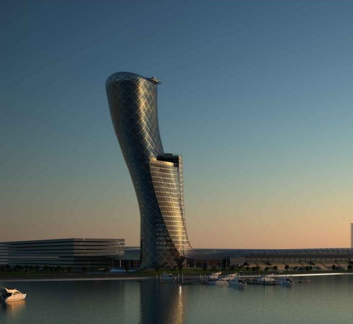 O Capital Gate é um arranha-céu de Abu Dabi nos Emirados Árabes Unidos. Em 2010, ganhou o status de torre mais inclinada do mundo, pelo Guinness Book. Capital gate é mais que duas vezes mais torto do que a torre de Pisa na Itália |