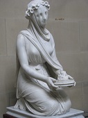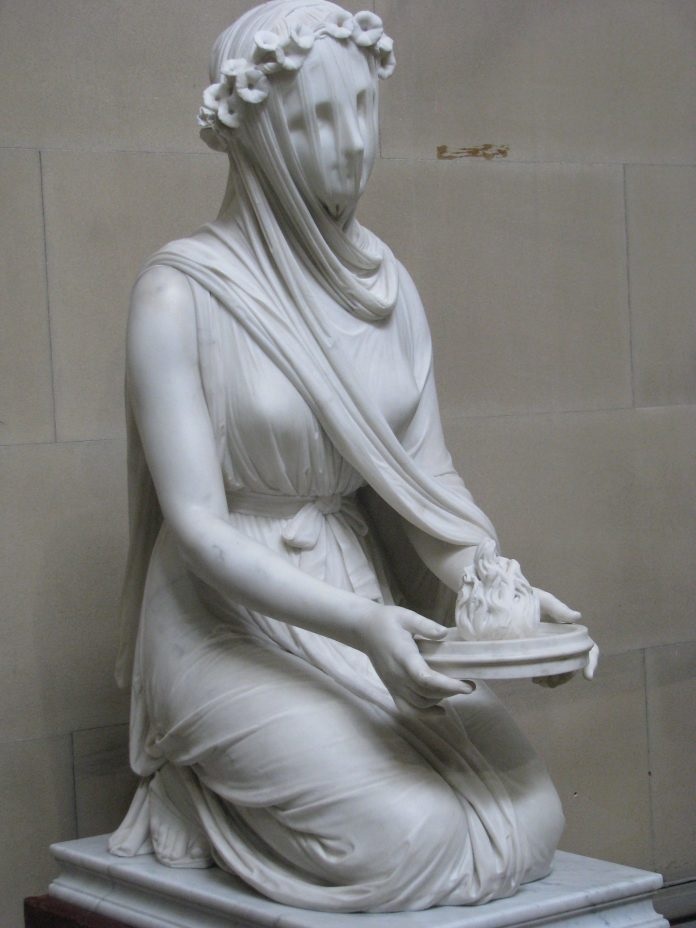 A Vestal Virgin Tuccia ou Veiled Woman é uma escultura de mármore, criada em 1743 por Antonio Corradini, um escultor veneziano rococó conhecido por suas representações ilusórias de figuras alegóricas femininas cobertas com véus que revelam os detalhes finos das formas abaixo. Location: Palazzo Barberini, Rome |