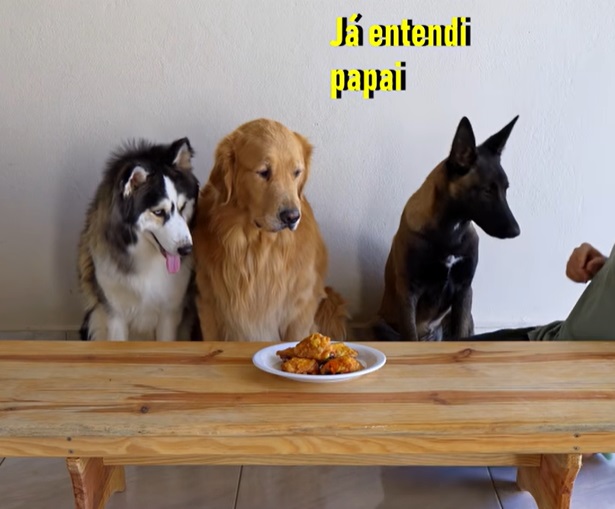 Deixei os 3 sozinhos com um prato cheio de frango assado - Será que o Pastor Malinois resistiu?
