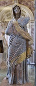 As estatuetas de Tânagra eram pequenas esculturas de terracota, produzidas pelos gregos antigos a partir do século IV a.C., reproduzindo principalmente mulheres jovens e de formas esbeltas, mas também crianças, divindades, máscaras, pessoas em afazeres domésticos e outras figuras. Finamente trabalhadas, raramente alcançavam mais de 20 ou 25 centímetros de altura. Eram produzidas em molde, sendo portanto ocas, tendo a parte de trás geralmente moldada à mão. Depois de cozidas, eram mergulhadas em uma solução líquida de argila e pintadas em cores vivas. O nome deriva da aldeia de Tânagra, na Beócia, onde os espartanos derrotaram os atenienses em 457 a.C.. Uma grande quantia dessas estatuetas foram primeiramente encontradas na necrópole dessa aldeia, um centro cerâmico em grande atividade desde o período pré-clássico. A partir de de 350 a.C., tornaram-se muito admiradas por seu estilo naturalista, variedade e pela riqueza do colorido, sendo exportadas para muitas regiões e imitadas em todo o mundo grego. |