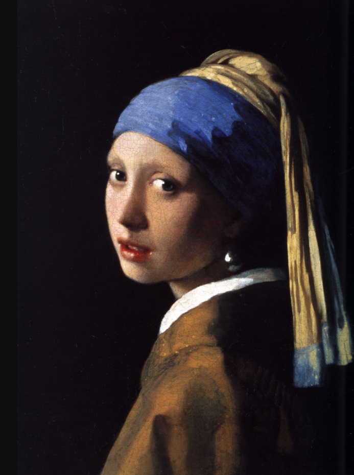 A pintura Moça com o Brinco de Pérola (holandês: Het Meisje met de Parel) é uma das obras-primas de Johannes Vermeer. Está no Mauritshuis de Haia. É muitas vezes referido como "a Mona Lisa do Norte" ou "a Mona Lisa holandesa". A modelo delicada, com seu olhar direto e os lábios entreabertos, é a obra mais famosa do pintor holandês Jan Vermeer, sendo considerada como a “Mona Lisa” da arte holandesa. Infelizmente, nada se conhece sobre a história de tão esplêndida composição, que apareceu pela primeira vez em 1881, num leilão em Haia, Holanda. Ao olhar tão delicada composição, o observador é imediatamente cativado pela misteriosa moça com o seu turbante exótico. O tom de sua pele clara e pura é salientado pelo brilho de seu brinco de pérola. É interessante saber que o turbante que Vermeer usa em sua modelo não encontra similar na pintura europeia, pois, no século 17, uma garota holandesa dificilmente seria vista usando um turbante. Por isso, os estudiosos no assunto creem que o pintor encontrou sua inspiração na pintura de Michael Sweerts, “Menino em um Turbante” (foto menor), pintada cerca de dez anos antes de Moça com Brinco de Pérola. Vermeer pintou a parte azul do turbante da moça com ultramarino natural, pigmento mais valioso do que o ouro, à época, feito de lápis-lazúli esmagado, que os contemporâneos do pintor dificilmente usavam, em razão de seu preço exorbitante. Mesmo na época em que sua situação econômica era extremamente precária, Vermeer continuou fazendo uso de tal pigmento em suas pinturas, resultando num azul maravilhoso. O brinco, que tanto chamam a atenção do observador, parece uma pérola branca. Foi feito com uma mancha branca espessa de empasto, sobre a qual incidem os mesmos raios de luz que iluminam o rosto, o turbante e o colarinho branco da moça. Sua forma ovoide repassa a sensação de peso e volume, o que não aconteceria, se ele fosse redondo. O fundo preto da composição não mais possui a sua cor originária. Uma análise feita na obra revelou que poderia ter sido um verde brilhante forte e profundo, destacando ainda mais a beleza da figura. A cor preta aumenta a sensação de tridimensionalidade da moça. A modelo veste uma roupa branca por baixo, cuja gola sobressai. Por cima usa uma peça rústica de cor ocre amarela, que se parece com uma capa ou uma outra peça de roupa folgada, de corte rústico, feita de tecido. A pintura Moça com Brinco de Pérola foi completamente restaurada em 1994, quando deixou à vista o fantástico efeito tridimensional da figura, sua cor brilhante e detalhes dos tons da pele até então escondidos, mostrando como foram originalmente pintados. Pode-se ver, a partir de então, um diminuto lampejo de luz no canto esquerdo da boca da modelo, que muitos críticos de arte acreditam ser a primeira filha do pintor, Maria, que à época teria cerca de 12 ou 13 anos de idade. |
