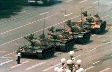 A foto de Jeff Widener, tirada em 1989, é o símbolo da rebelião de um estudante contra a repressão do exército chinês.