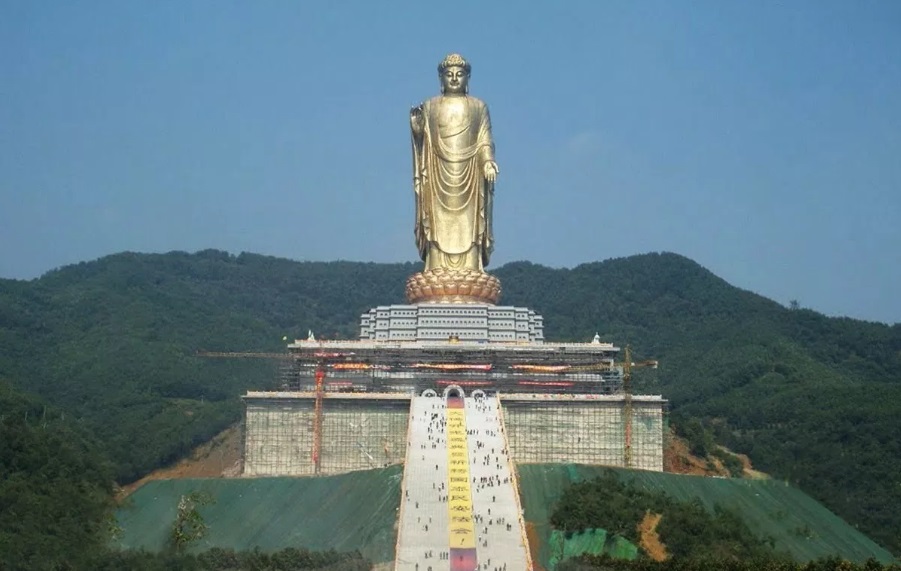 A China pode se orgulhar de ter três grandiosos monumentos entre as maiores estátuas do mundo, e deve se orgulhar mais ainda por ter a maior estátua do mundo – uma representação do Buda Vairochana, erguida a impressionantes 153 metros de altura, no distrito de Henan. Entre os cinco budas de meditação, Vairochana é o do Centro, e representa o Adi-Buda, a essência da qual emanam todos os budas; representa também o espaço que permite a manifestação de todos os fenômenos. A estátua está localizada no Templo Foquan, construído durante a Dinastia Tang, que governou a China de 618 a 907, e leva seu nome por causa de uma fonte situada próxima ao local, da qual emana água a temperatura de 60ª e cujas propriedades acreditam-se serem curativas. O Buda do Templo da Primavera foi construído como uma resposta do governo chinês à destruição dos Budas de Bamiyan, no Afeganistagão – representações do Buda esculpidas em pedra e datadas do século V, que foram destruídas pelo Talibã em 2001.
